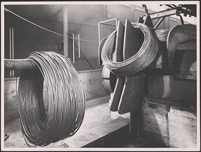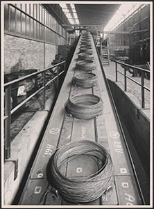 De zgn. hakenbaan voor het vervoer bossen metaaldraad in …