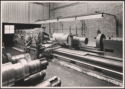 Draaibank in de kabelfabriek in Alblasserdam.