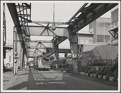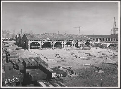Opslagterrein met zgn. blokken bij de kabelfabriek in …