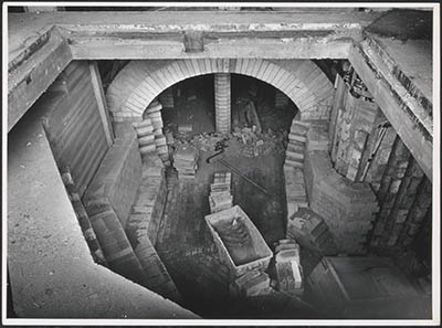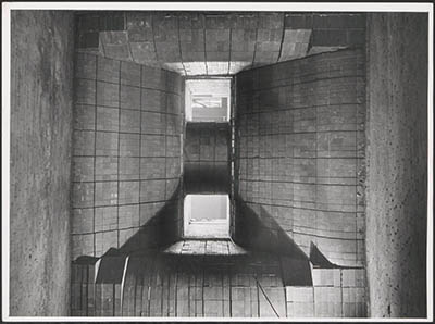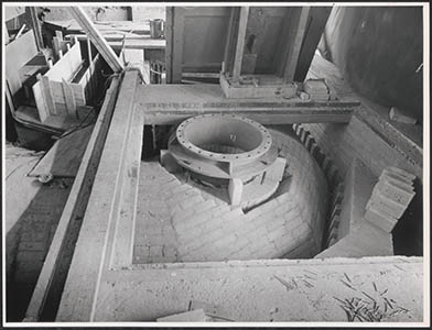 Gemetseld binnenwerk van een oven in de kabelfabriek in …