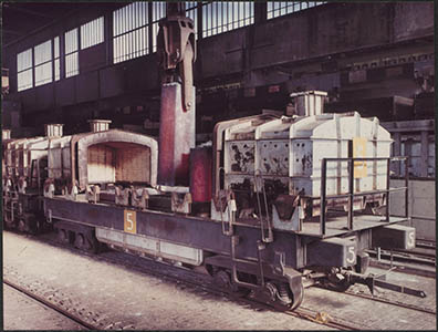 Trein voor het transport van metalen blokken binnen de …