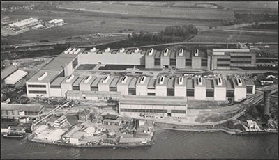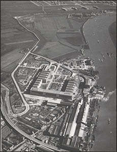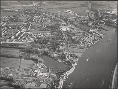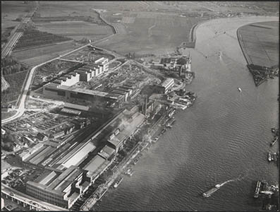Luchtfoto van de kabelfabriek in Alblasserdam.