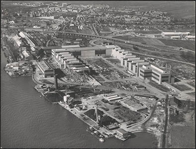 Luchtfoto op het terrein van de kabelfabriek in …
