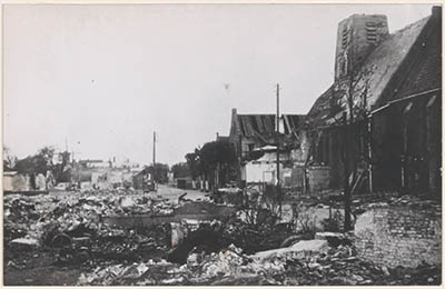 Verwoeste bebouwing rondom de Hervormde Kerk in de …