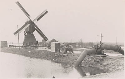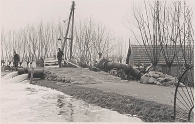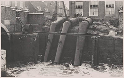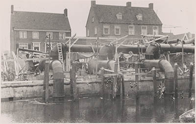 Noodpompen aan de Polderstraat pompen water uit de Alblas …