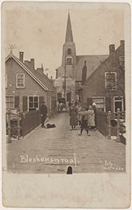 Mannen op een brug over de Graafstroom in Bleskensgraaf