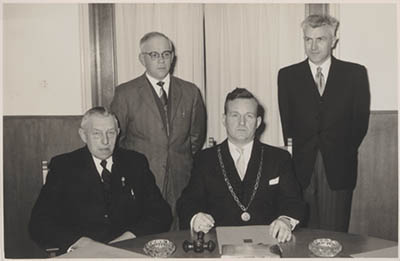 Wethouder A. van Mourik, secretaris M. Bouter. Staand …