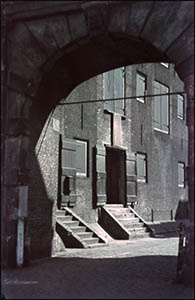 De Groothoofdspoort aan de stadszijde. Rechts Hotel …