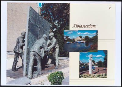 Ansichtkaart met reddingsvoertuigen in Alblasserdam.
