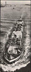 Vrachtboot Damco 249 op de Noord. Op de achtergrond links …