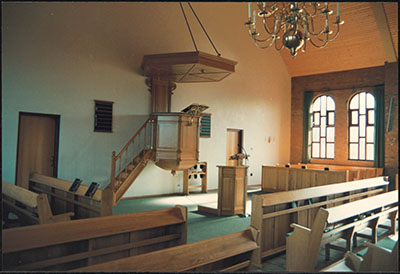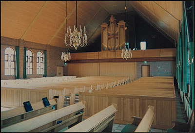 Interieur van de kerk van de Oud Gereformeerde Gemeente …
