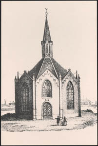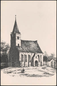 Tekening van de Koepelkerk aan het Cortgene in Alblasserdam.