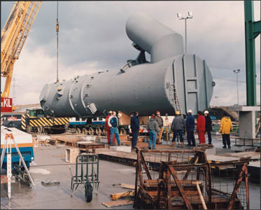 Het plaatsen van de slibdroger tijdens de bouw van de …