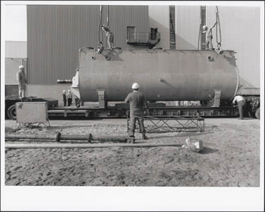Aankomst van de slibdroger bij de bouw van de …