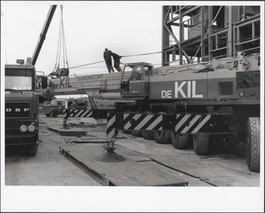 Hoogwerker bij de bouw van de slibverbrandingsinstallatie …