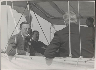 Een zichtbaar ontspannen Prins Bernhard op het achterdek …