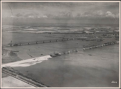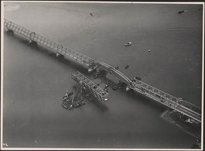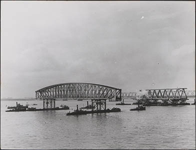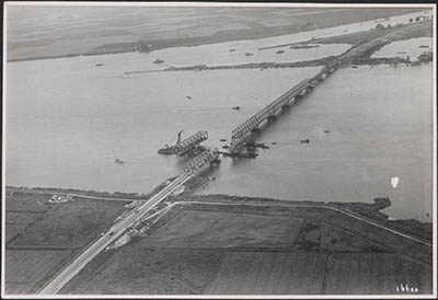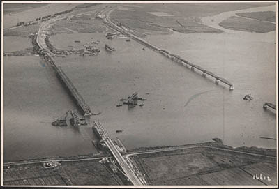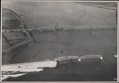 In 1944 zijn 5 overspanningen van de verkeersbrug zwaar …
