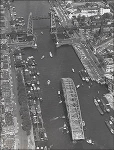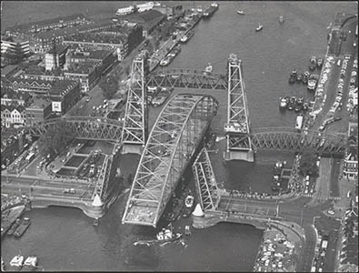 Afzinken van de op pontons geplaatste Papendrechtse brug …