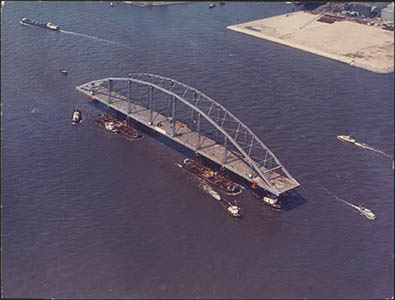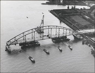 Vervoer van de Papendrechtse brug vanaf de werf van Penn …