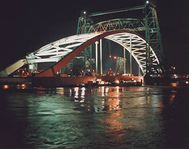 Passage van een boog van de Van Brienenoordbrug door de …