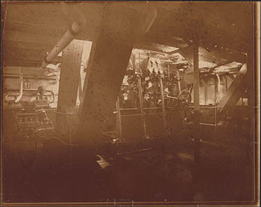 Het ruim met de machinerie van een baggermolen.