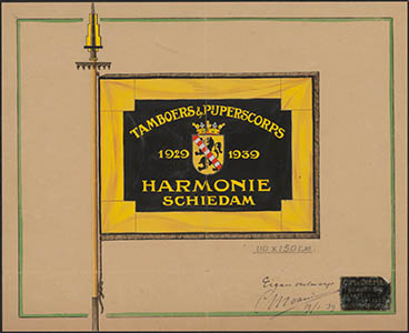 Een vlag van het Tamboers- en Pijperkorps 'Harmonie' te …
