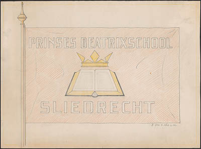 Een vlag van de Prinses Beatrixschool te Sliedrecht.