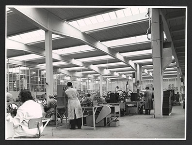 Montagehal van de elektrische apparatenfabriek Rudolf …