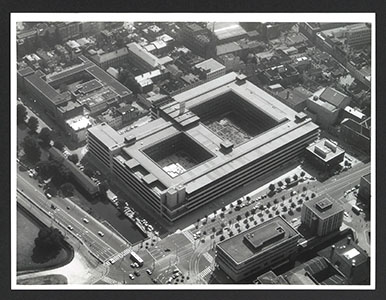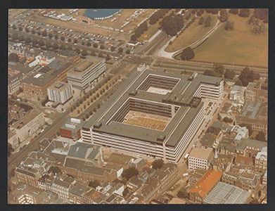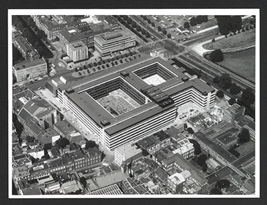 Luchtfoto van het Ministerie van Financiën aan het Korte …