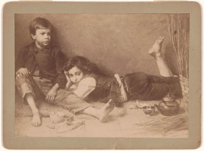 Foto van een tekening van Wally Moes van twee kinderen