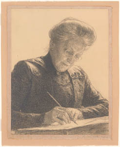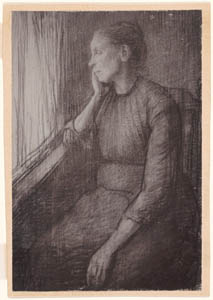 Prent getekend door August Allebé van een zittende vrouw