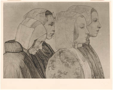 Foto van een tekening van Wally Moes van vier vrouwen