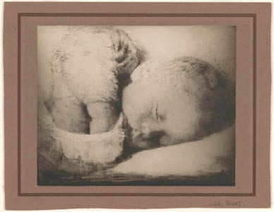 Foto van een tekening van Wally Moes van een slapend kind