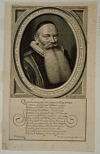Portret van Jacobus Rolandus met 13-regelig vers door …