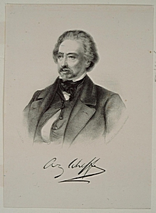 Portret van Ary Scheffer met facsimile van zijn handtekening