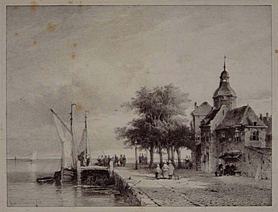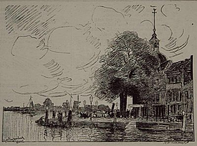 Nieuwe Haven met Lange Houtenbrug en Grote Kerk. Getekend …