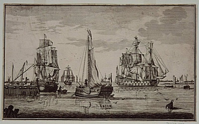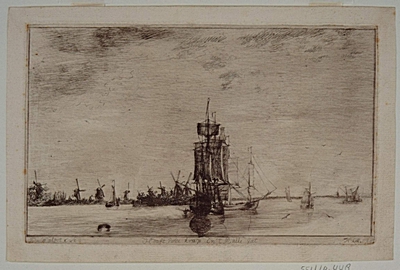 Gezicht op de Merwede voor Dordrecht met links het …