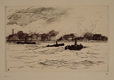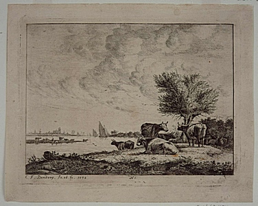De oevers van de Merwede. In de verte Dordrecht