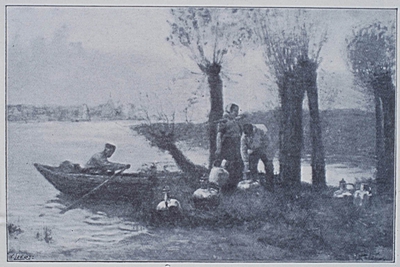 Het ophalen van melkbussen per boot