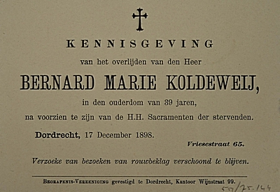 Kennisgeving van het overlijden van Bernard Marie Koldewey