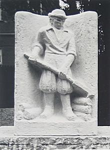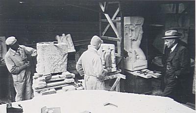 Hildo Krop aan het steenhouwen van de beelden voor de …