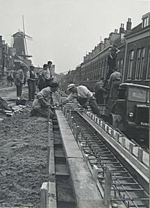 Aanleg van de waterkering op de Noordendijk met de molen …