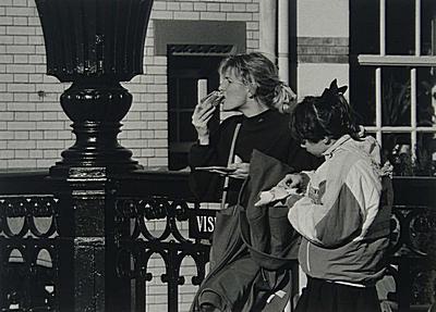 Moeder en dochter eten vis op de Visbrug
