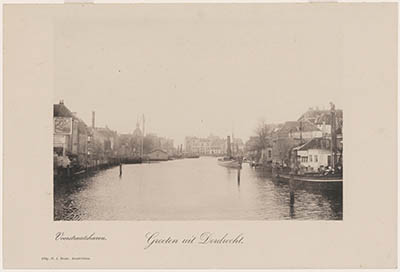 Voorstraatshaven richting Pelserbrug en Grote Kerk.