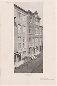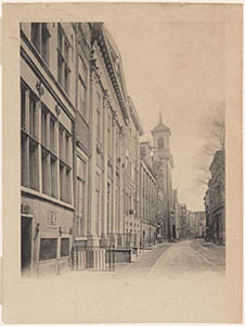 Panden in de Wijnstraat met rails voor de paardentram.