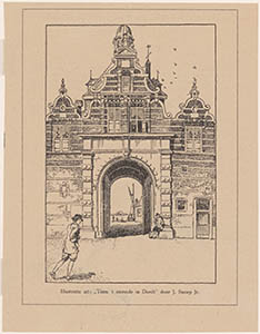 Tekening van de stadszijde van de Riedijkspoort.
