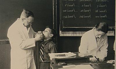 Schooltandarts Hendriks met assistente M.J. Schillemans