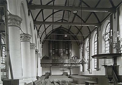 Interieur van de Augustijnenkerk met orgel en preekstoel