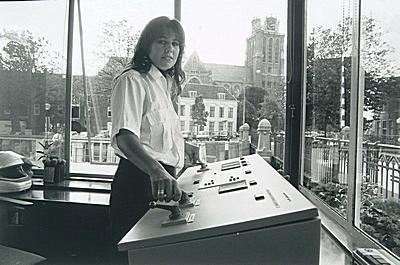 Brugwachter in het huisje van de Havendienst bij de …