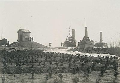 Waterpeilhuisje bij het Kop van 't Land. Kolen laden …